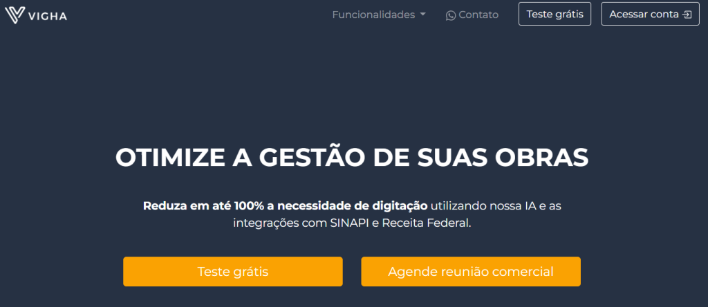 O Vigha é um programa para construtoras que aposta tudo na mobilidade. Seu foco é o controle do canteiro através de aplicativos. Ele facilita muito a comunicação entre o mestre de obras e o escritório, permitindo o envio de fotos, relatórios diários e solicitações de material direto do celular.