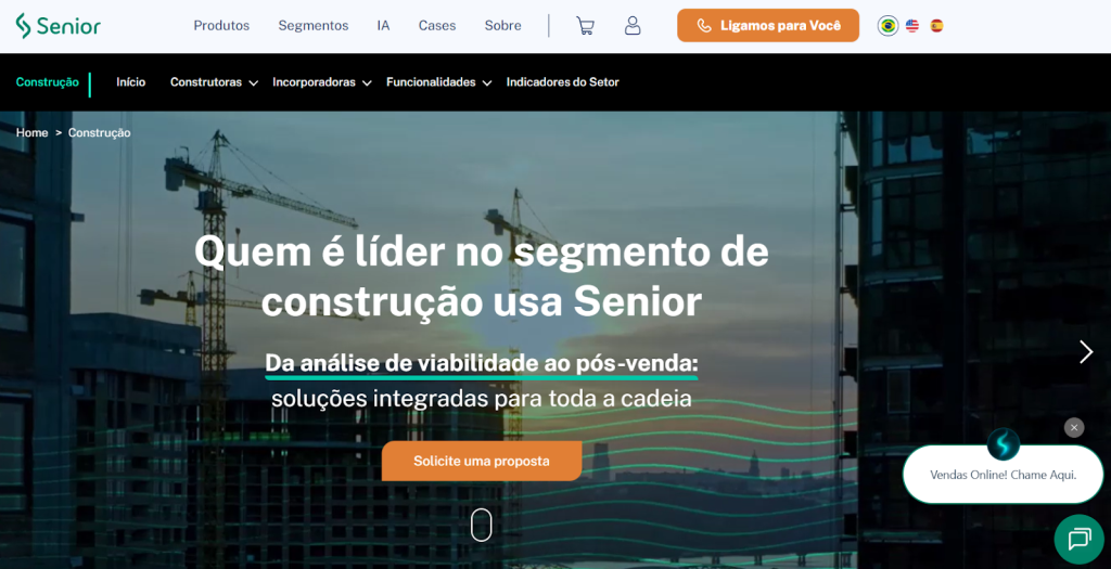 Grandes construtoras: aí é outro patamar mesmo. Plataformas empresariais completas, recursos avançados de Business Intelligence e escalabilidade alta são obrigatórios.