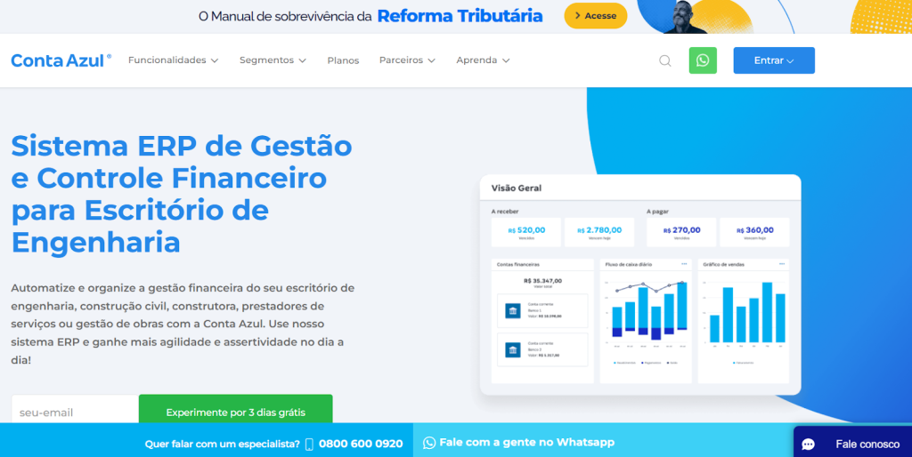 - Conta Azul: ERP financeiro para escritórios de engenharia e pequenas construtoras